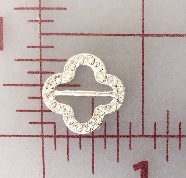 This listing is for a set of 5 clover shaped rhinestone buckles