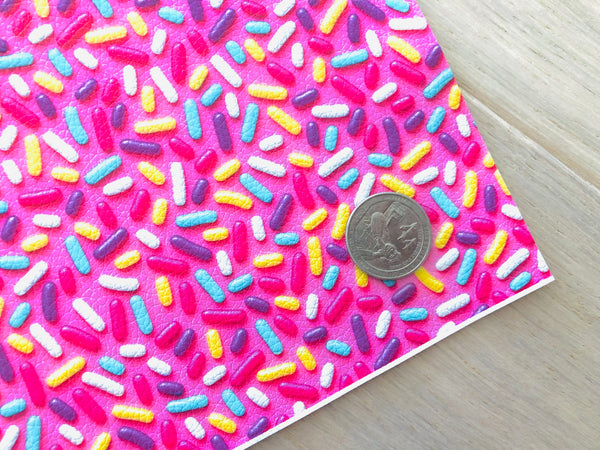 Printed pebbled faux leather pink ice cream sprinkles design
