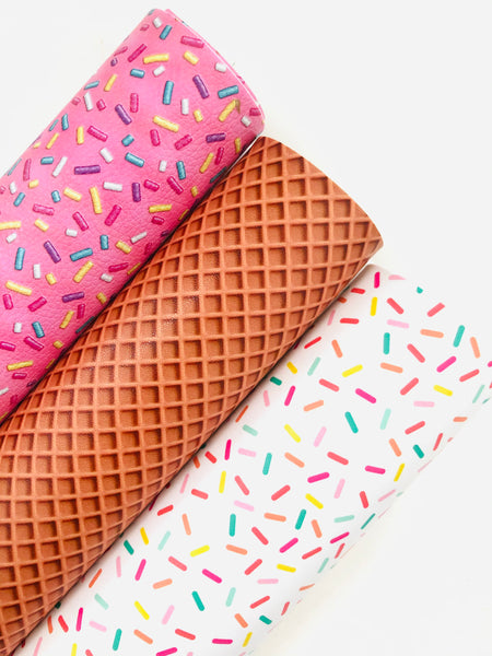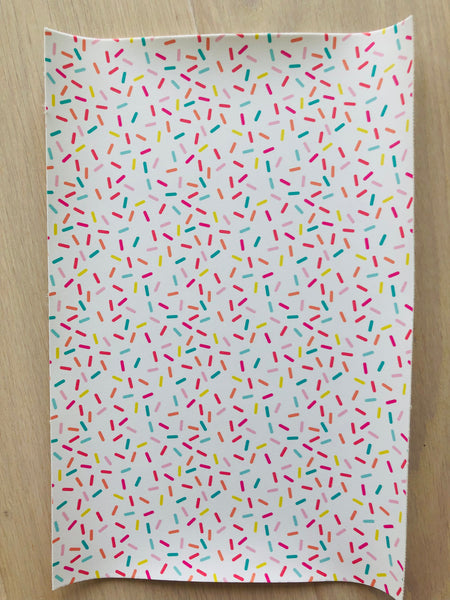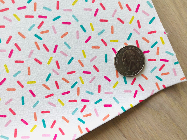 Custom printed smooth faux leather with a ice cream sprinkles design.