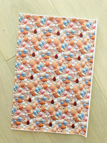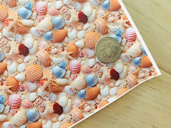 Printed pebbled leather with sea shell design
